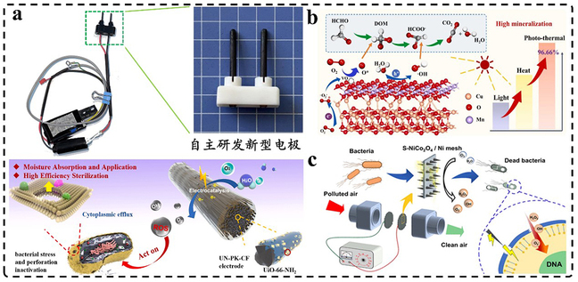 Figure 3. (a-c) Chen Shougang's research group has transformed its achievements and published papers in the field of indoor air pollution control in recent years