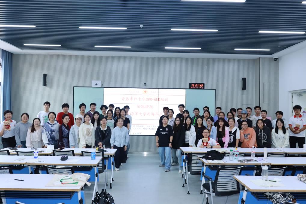 应急救护培训作为中国海洋大学第十二届校园安全文化节的首场活动,揭开了本次系列活动的序幕,让同学们通过学习安全急救知识和技能,提高自我保护能力和应急救援水平,切实增强了在实验室场景下的自救互救能力,使同学们能够更好地保障自身和他人的生命健康安全,为构建平安、和谐的校园环境增添了一道坚实屏障。活动最后,全体培训老师与学员合影留念,为本次培训画上了圆满句号。