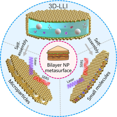 Figure 3 Schematic diagram of a three-dimensional bilayer self-assembled metasurface of nanoparticles for the detection of seawater microplastics and small molecules
